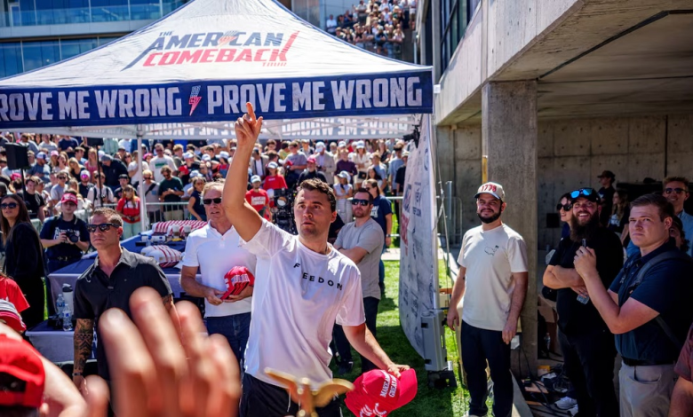 Kirk’s appearance on Wednesday was the first in a planned 15-event “American Comeback Tour” at universities around the country. He often used such events, which typically drew large crowds of students, to invite attendees to debate him live.