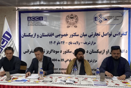 Officials from Balkh province and Uzbekistan’s Syrdarya region discussed the expansion of bilateral trade relations during a meeting titled “Afghanistan–Uzbekistan Private Sector Relations.”