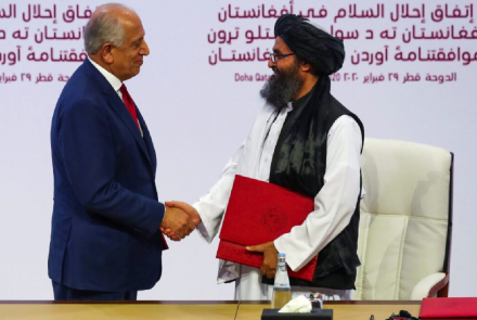 The agreement was finalized after eighteen months of negotiations and was signed by a delegation of the Islamic Emirate led by Mullah Abdul Ghani Baradar and a U.S. delegation headed by Zalmay Khalilzad, the former U.S. Special Representative for Afghanistan Reconciliation.