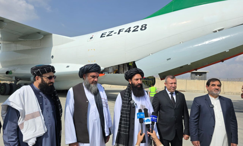 اجناس ارسالی از طرف دولت ترکمنستان به منظور کمکهای بشردوستانه که شامل مواد غذایی، محصولات نساجی، دارو و اقلام ضروری بهداشتی و درمانی است، وارد میدان هوائی بینالمللی کابل شد.