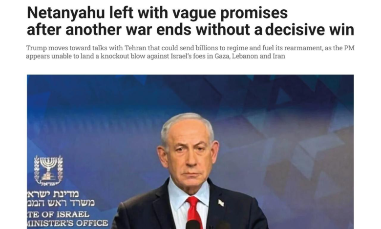 روزنامه تایمز اسرائیل نوشت که بنیامین نتانیاهو پس از پایان جنگ، بدون دستیابی به پیروزی قاطع و تنها با وعدههای مبهم، تنها مانده است.
