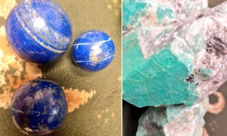 Duyuruda, bu değerli taşlar arasında 1,5 kg ağırlığında ve 3 küre şeklinde kesilmiş Badakhshan lapis lazuli’ye benzer bir türün bulunduğu belirtildi.