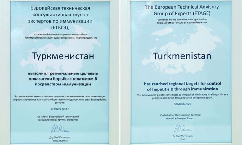 Bu Sertifika, Türkmenistan’ın aşılama yoluyla hepatit B ile mücadelede bölgesel hedeflere ulaştığını doğrulamaktadır. Belgede, bu başarının, Avrupa Bölgesi genelinde halk sağlığı tehdidi olan viral hepatitin ortadan kaldırılması hedefine ulaşmak için büyük önem taşıdığı belirtiliyor.